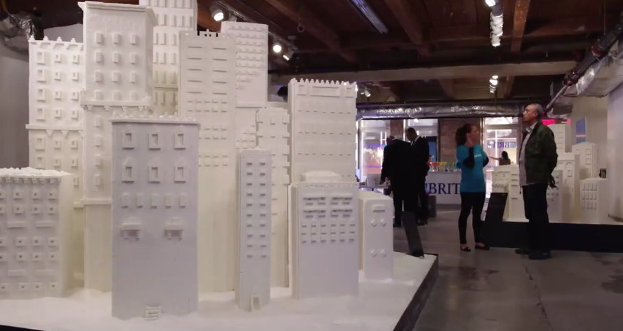 An exhibit in conjunction with the Brita #ChooseWater campaign at New York's Chelsea Market, where roughly 1 million sugar cubes (weighing 7,000 pounds) were shaped into an even larger skyline to reflect the amount of sugar consumed by a family of four over their lifetimes